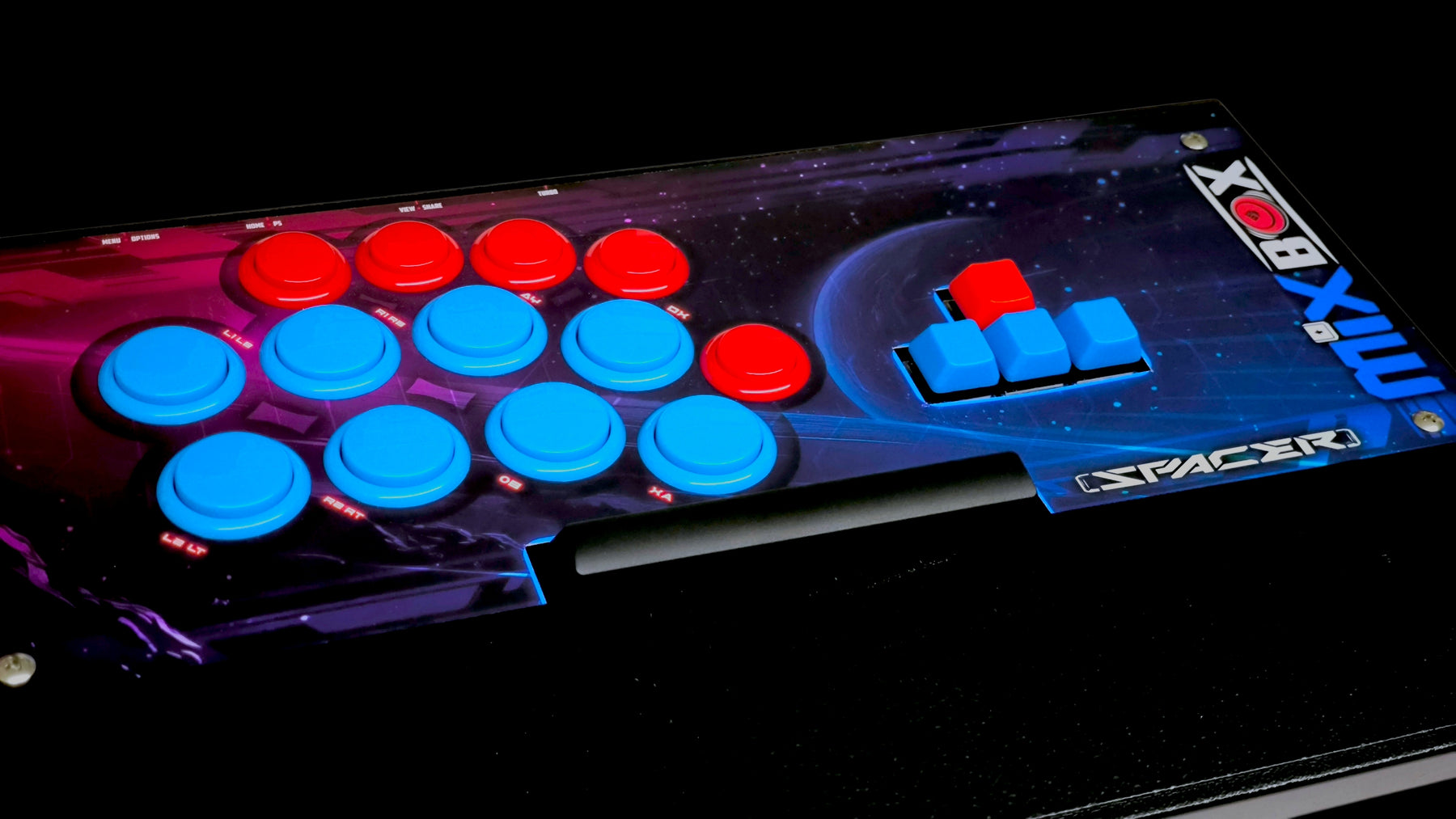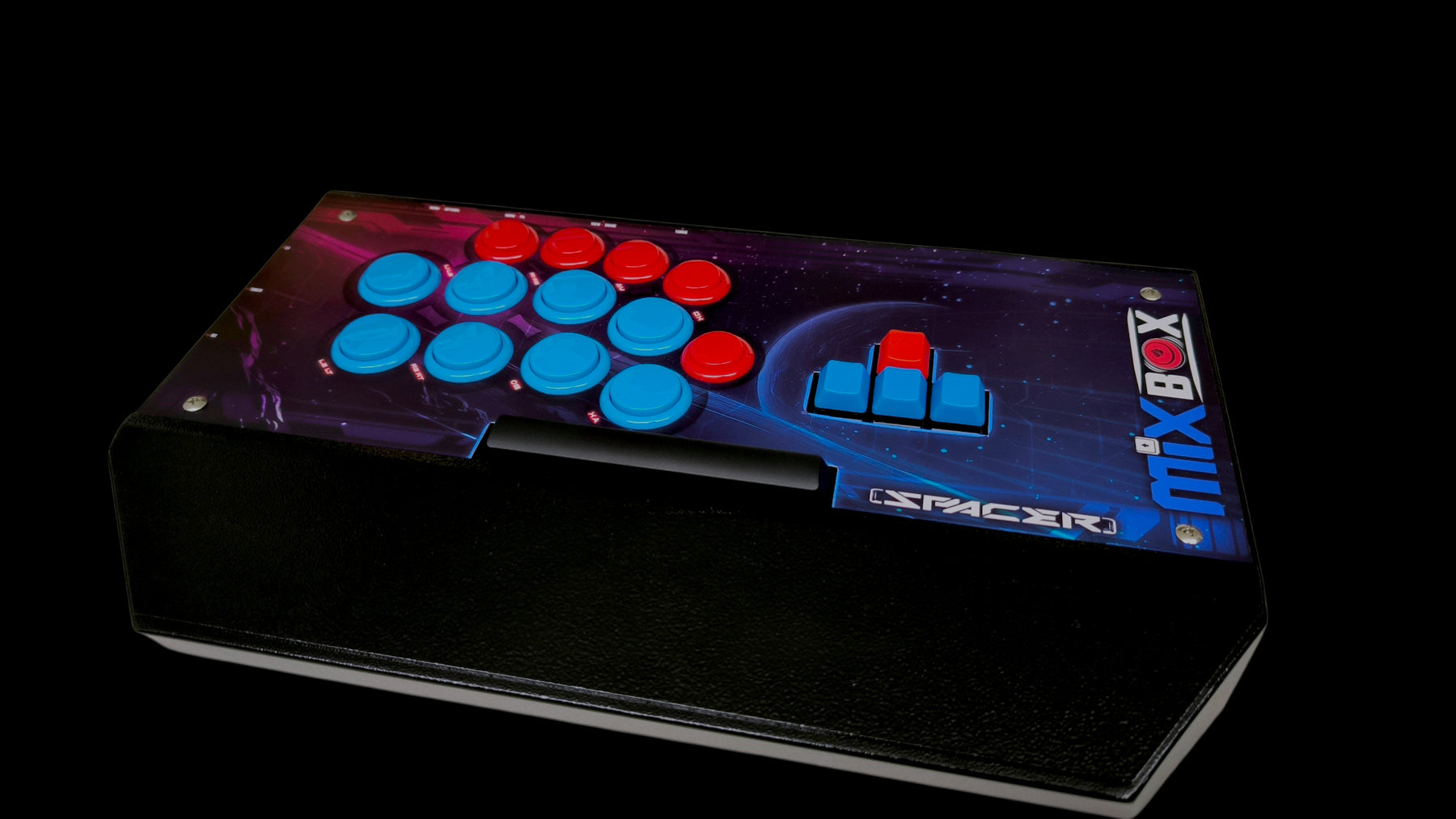 eight attack buttons. Its faceplate features 13 Sanwa Denshi buttons, including a dedicated space bar button that gamers love for intuitive jumping. The Mixbox RS+ delivers precision and versatility for competitive gamers, ensuring top performance in tournaments and casual play.